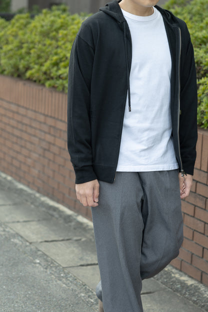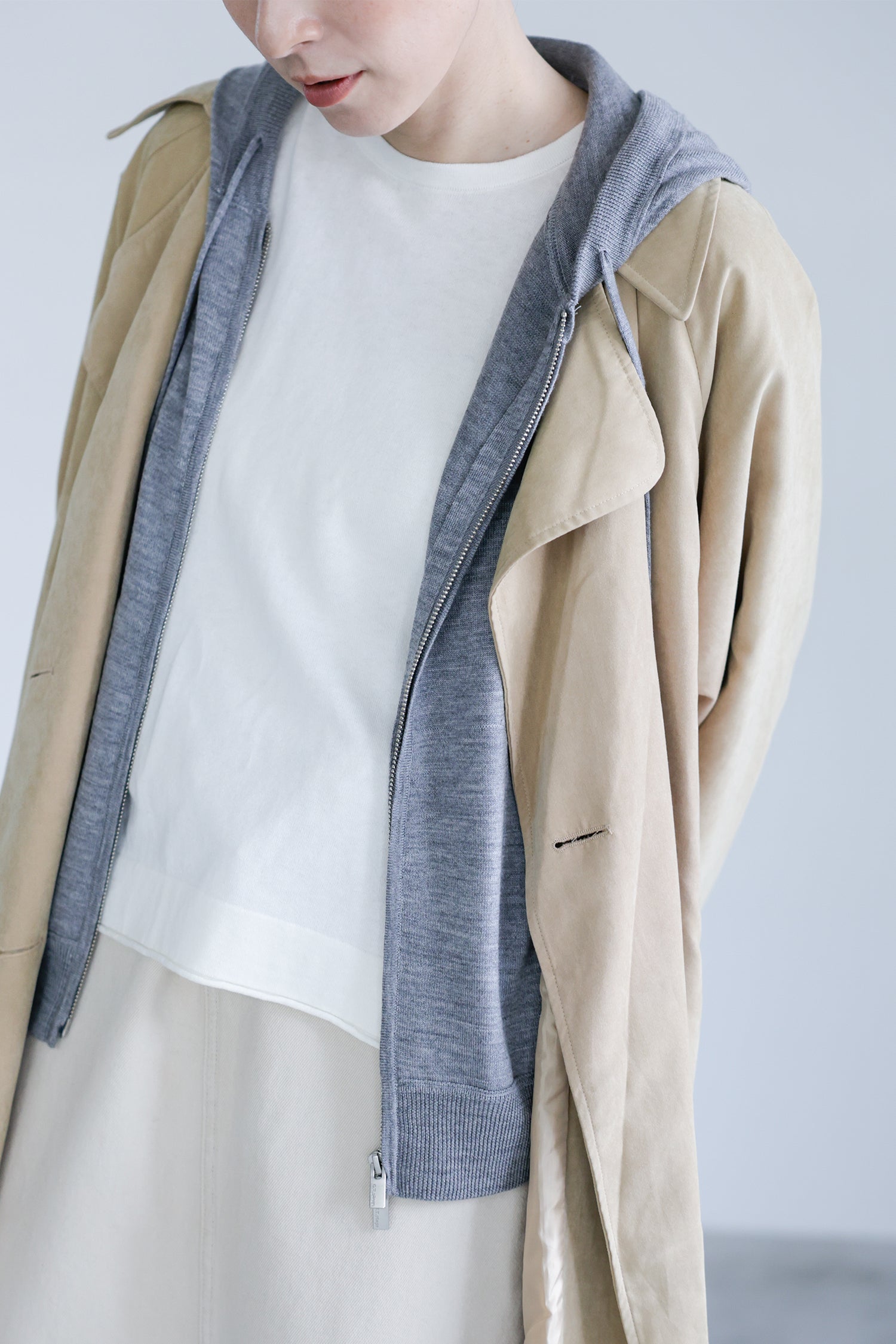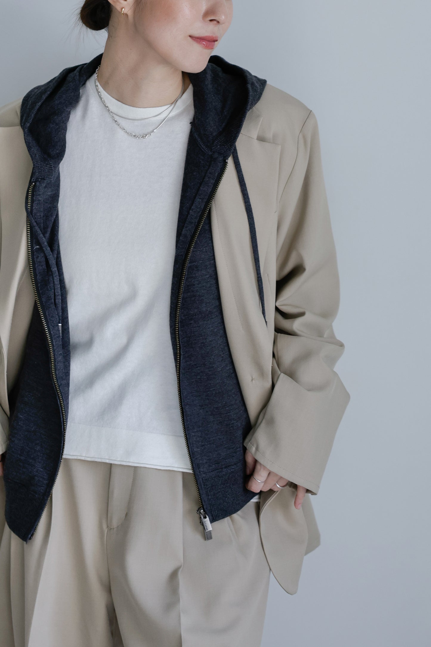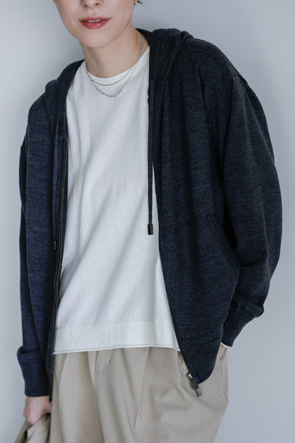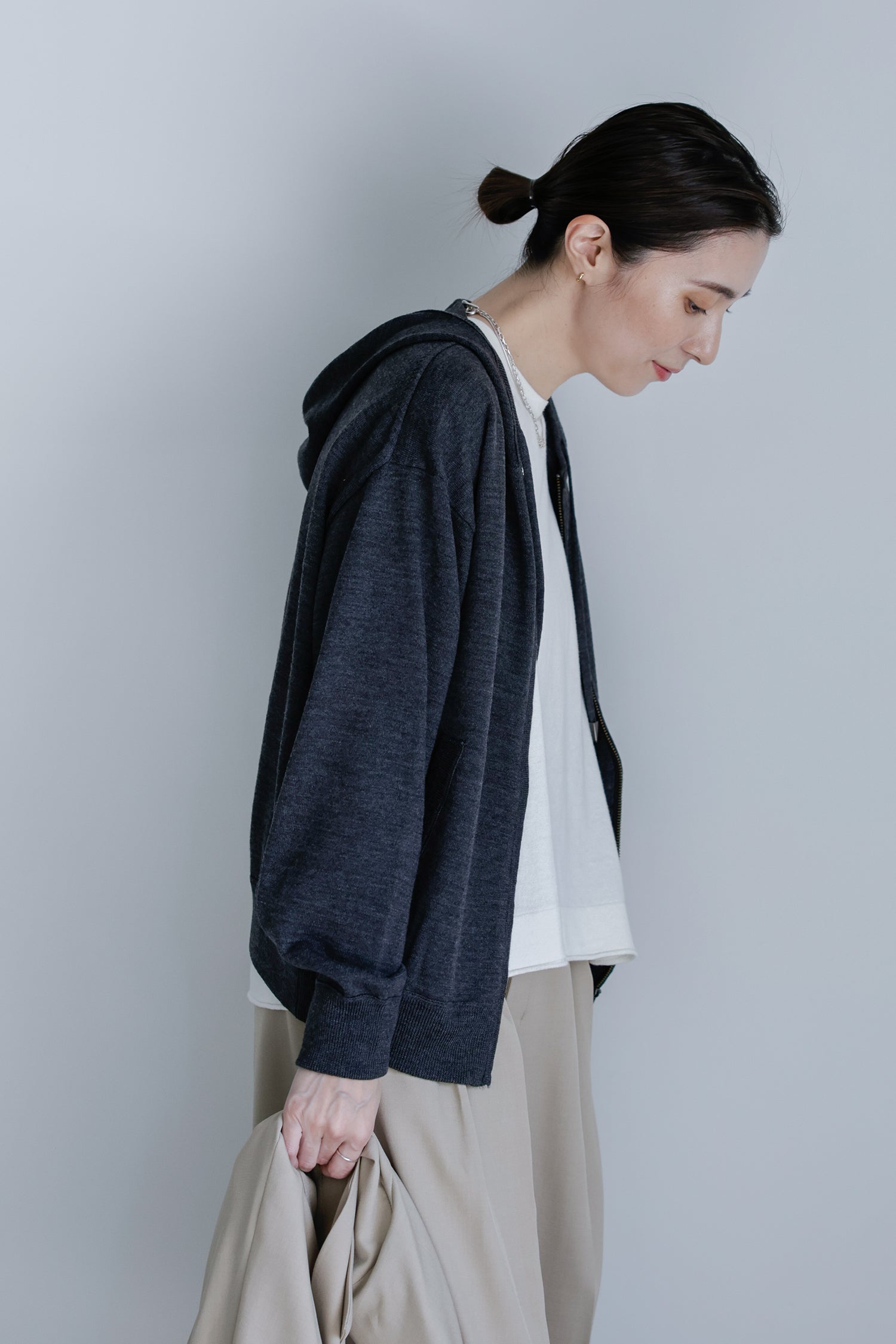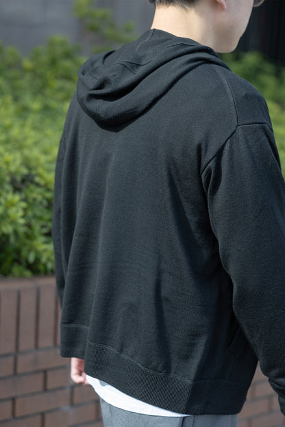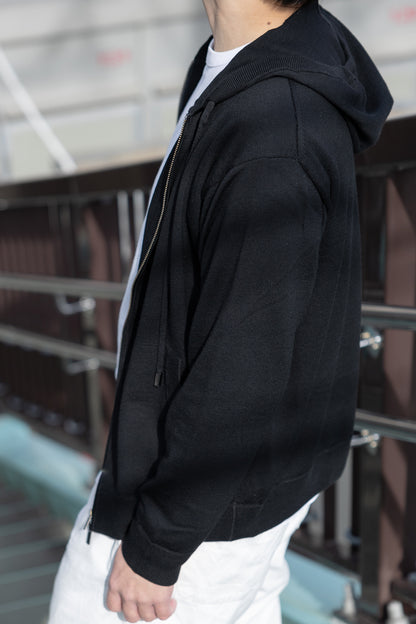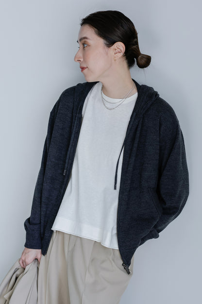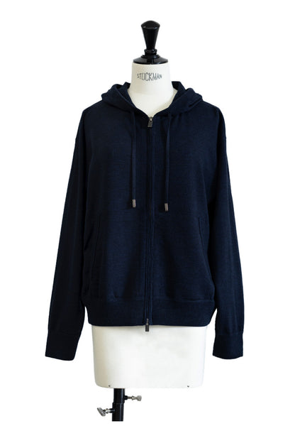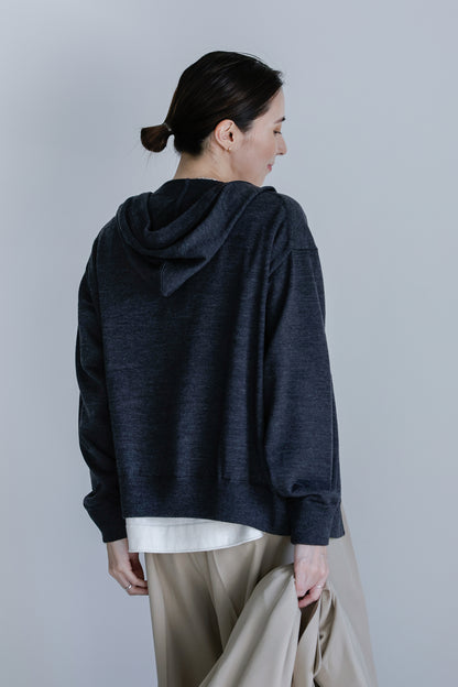 This is a very comfortable, hoodie with a firm knitted fabric, resistant to pilling, and a three-dimensional shape.