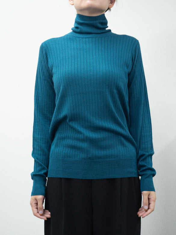 Re Stock Silk cashmere wide rib turtle pullover /5561