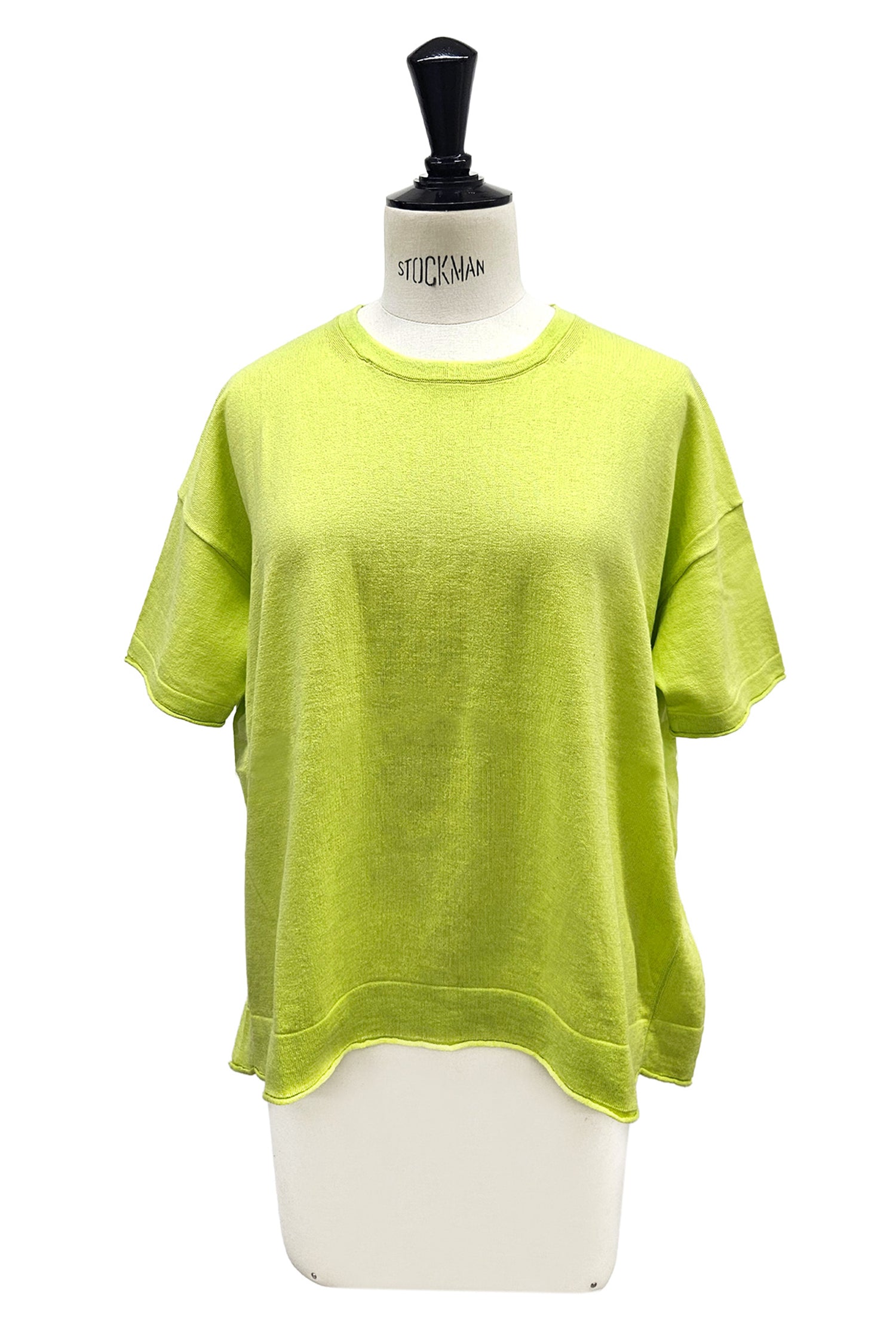 Ce tricot s'inspire d'un T-shirt, et les manches et l'ourlet sont roulés pour donner un aspect brut.