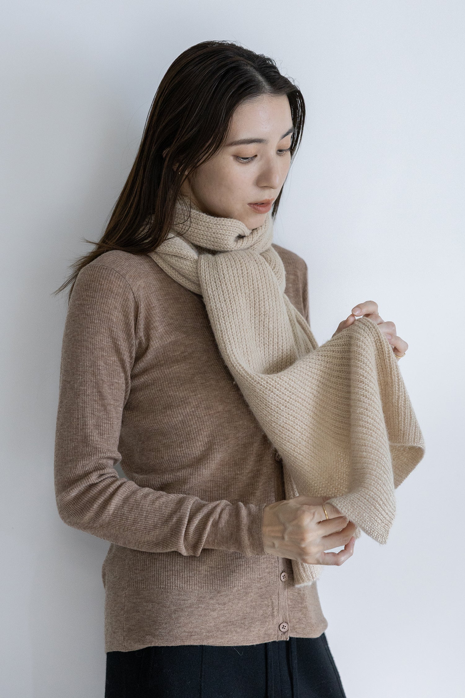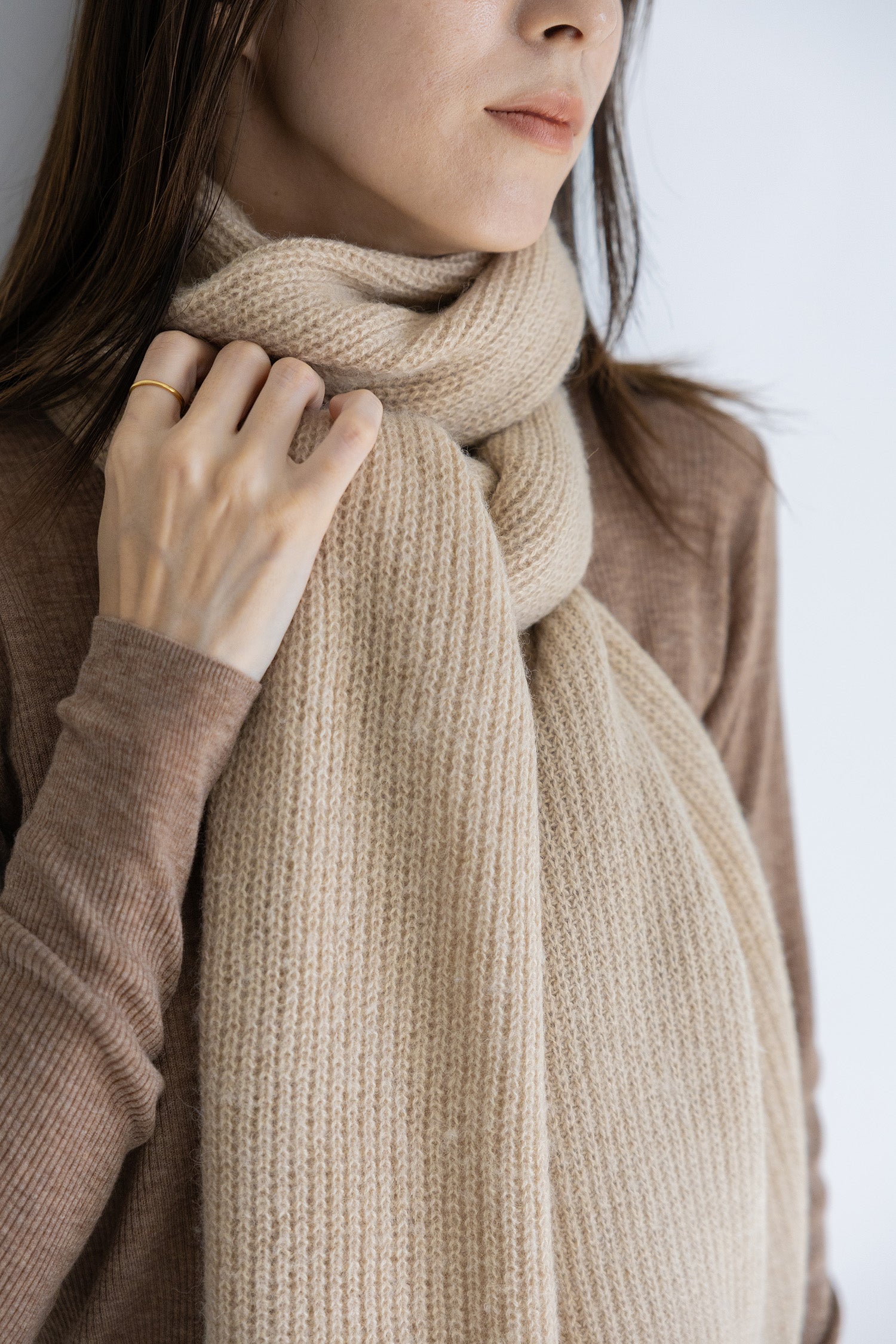 L'étole, tricotée duveteuse d'un seul côté, permet de la porter de manière décontractée.