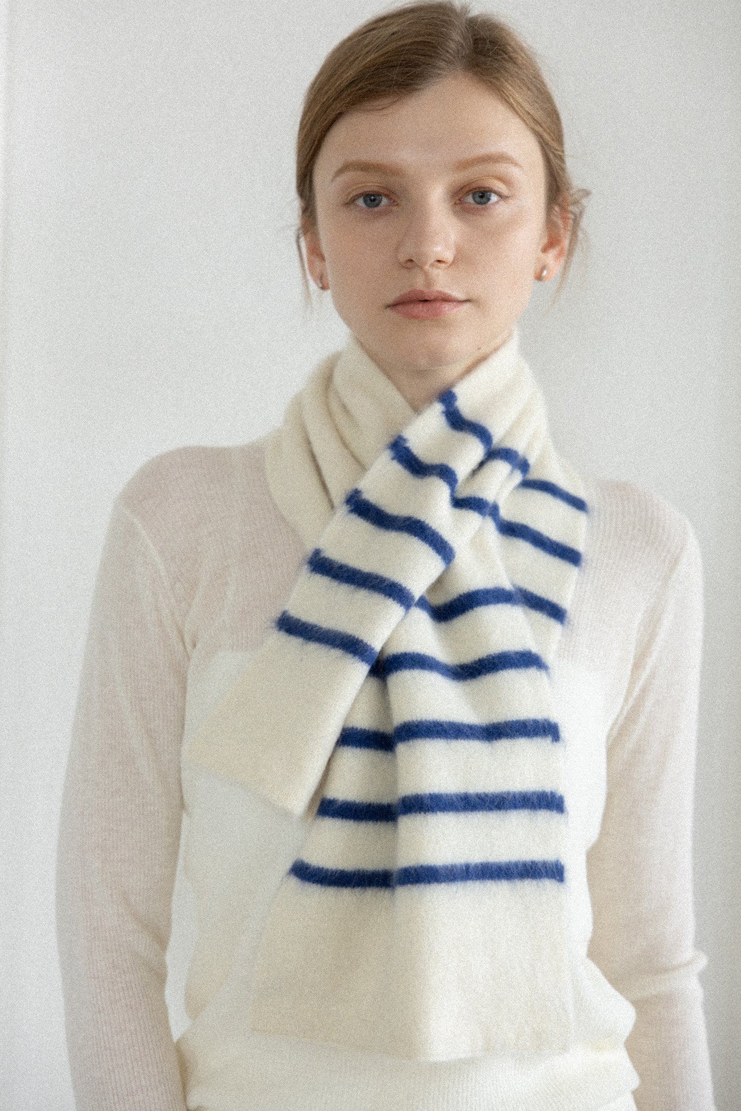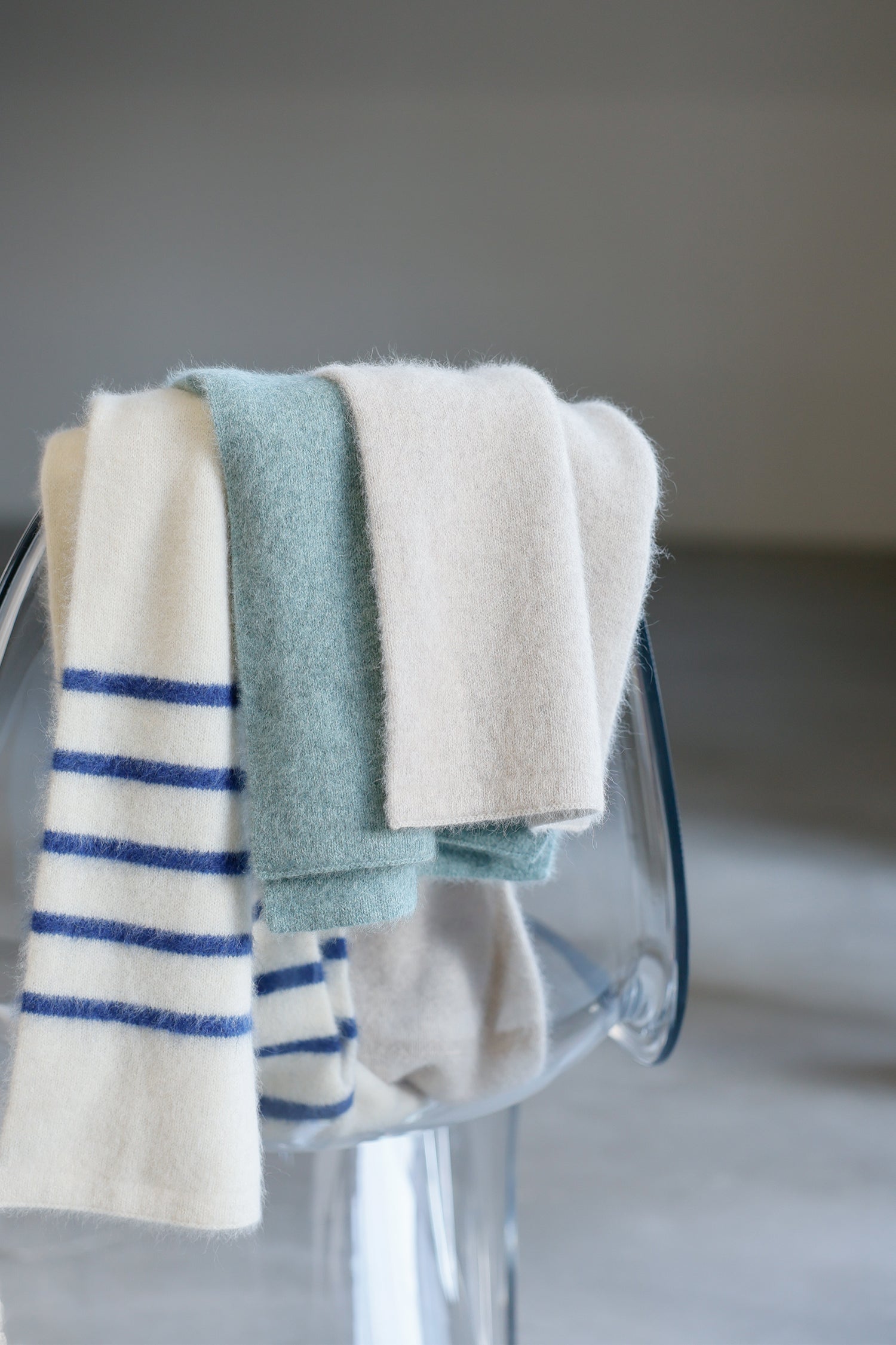 ふんわりとした素材感が心地よく、とても暖かい、コンパクトで使いやすいサイズ感のマフラーです。
