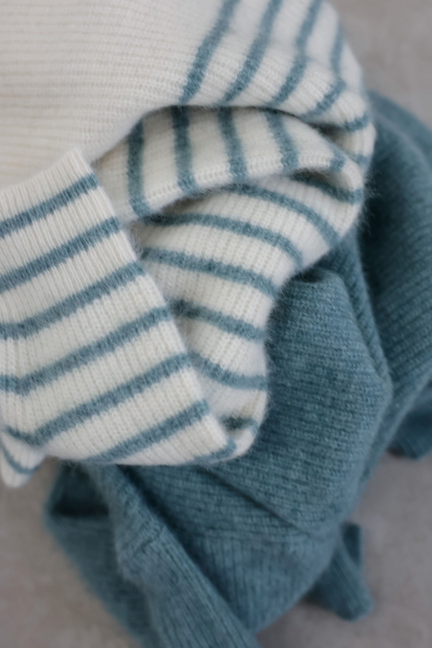 ラクーンとフォックスの毛をそれぞれブラッシングする事でとれた素材をナイロンで撚りをかけて出来たとても暖かい素材です。