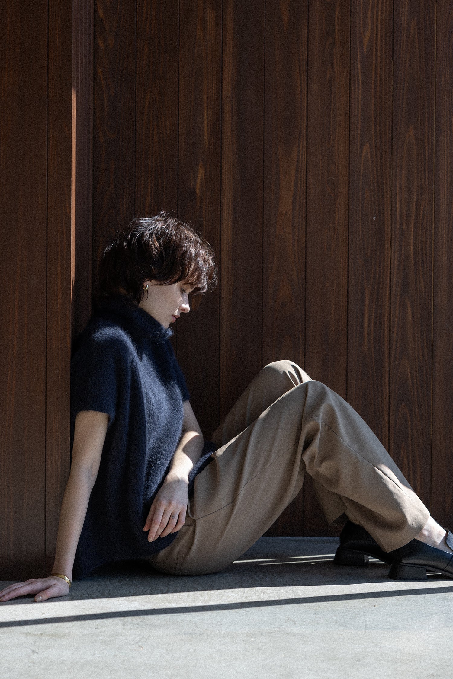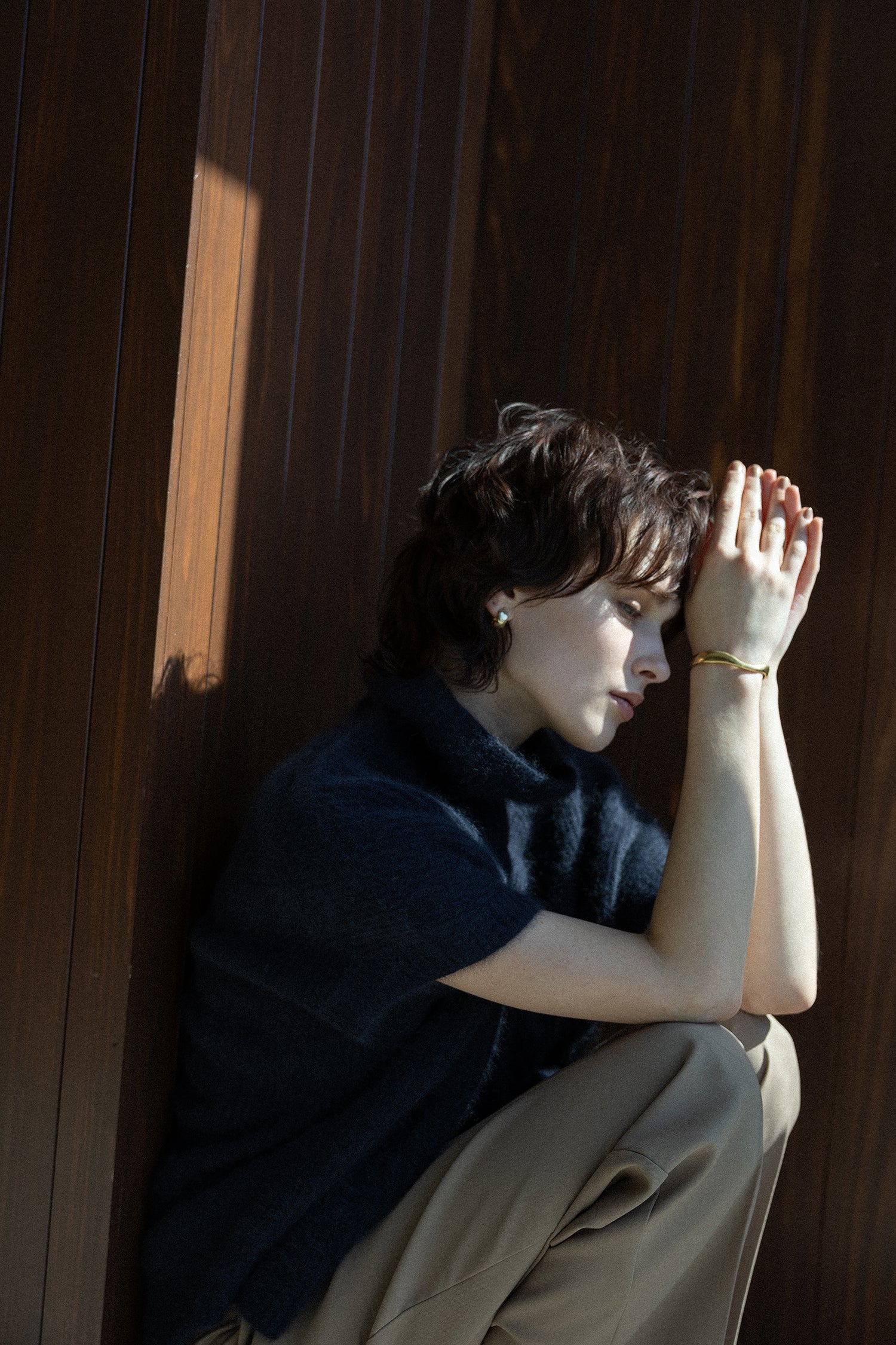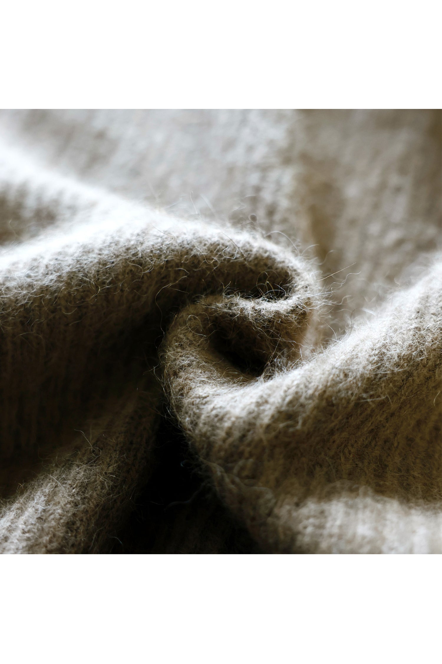 ほどよいゆとりを持たせた衿ぐりが、空気を含んで首回りをふんわりと包み、自然な暖かさを感じさせます。