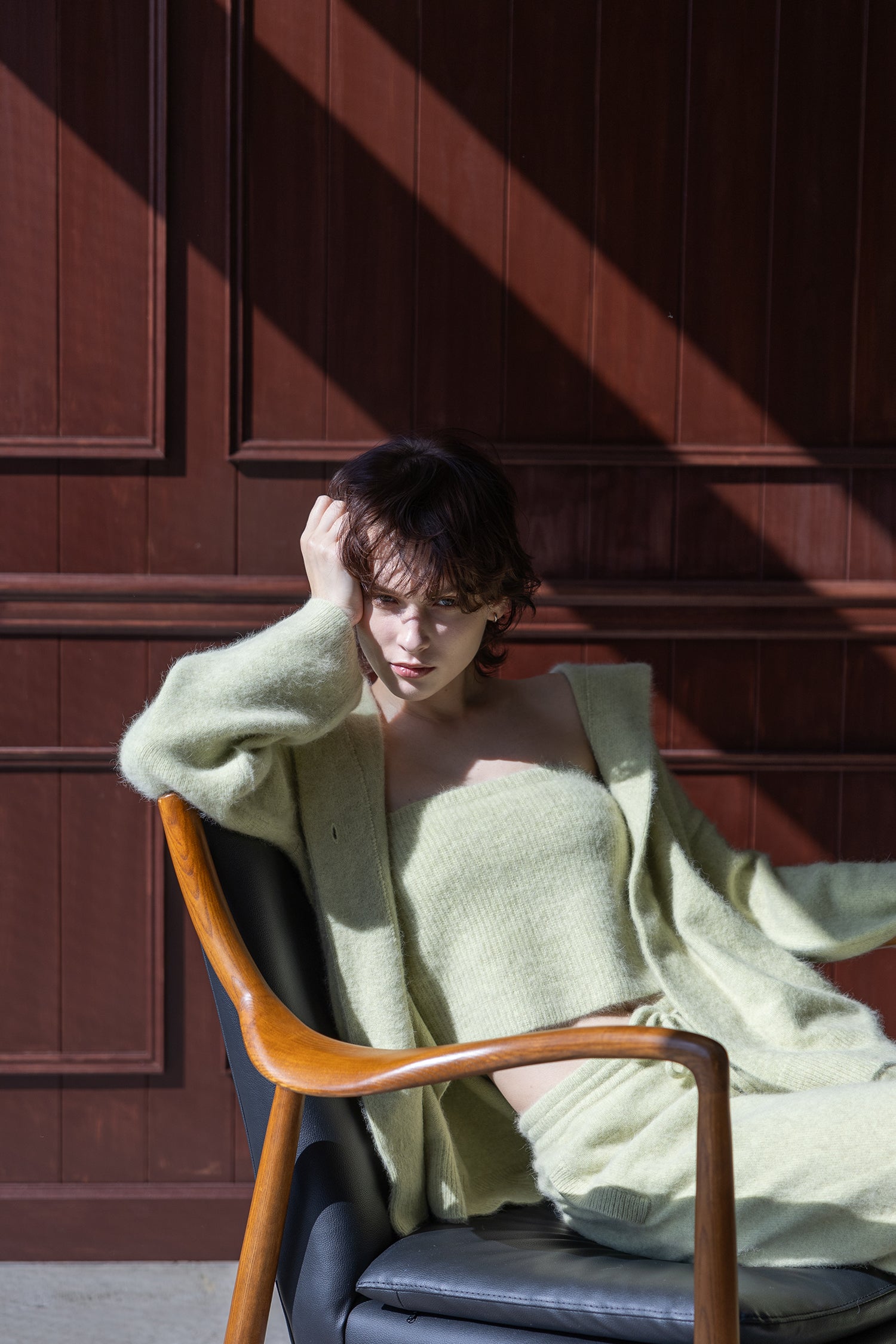 秋はTシャツなどのカットソー、冬はタートルで合わせていただくと雰囲気を変えながら、長く暖かく楽しんでいただけます。