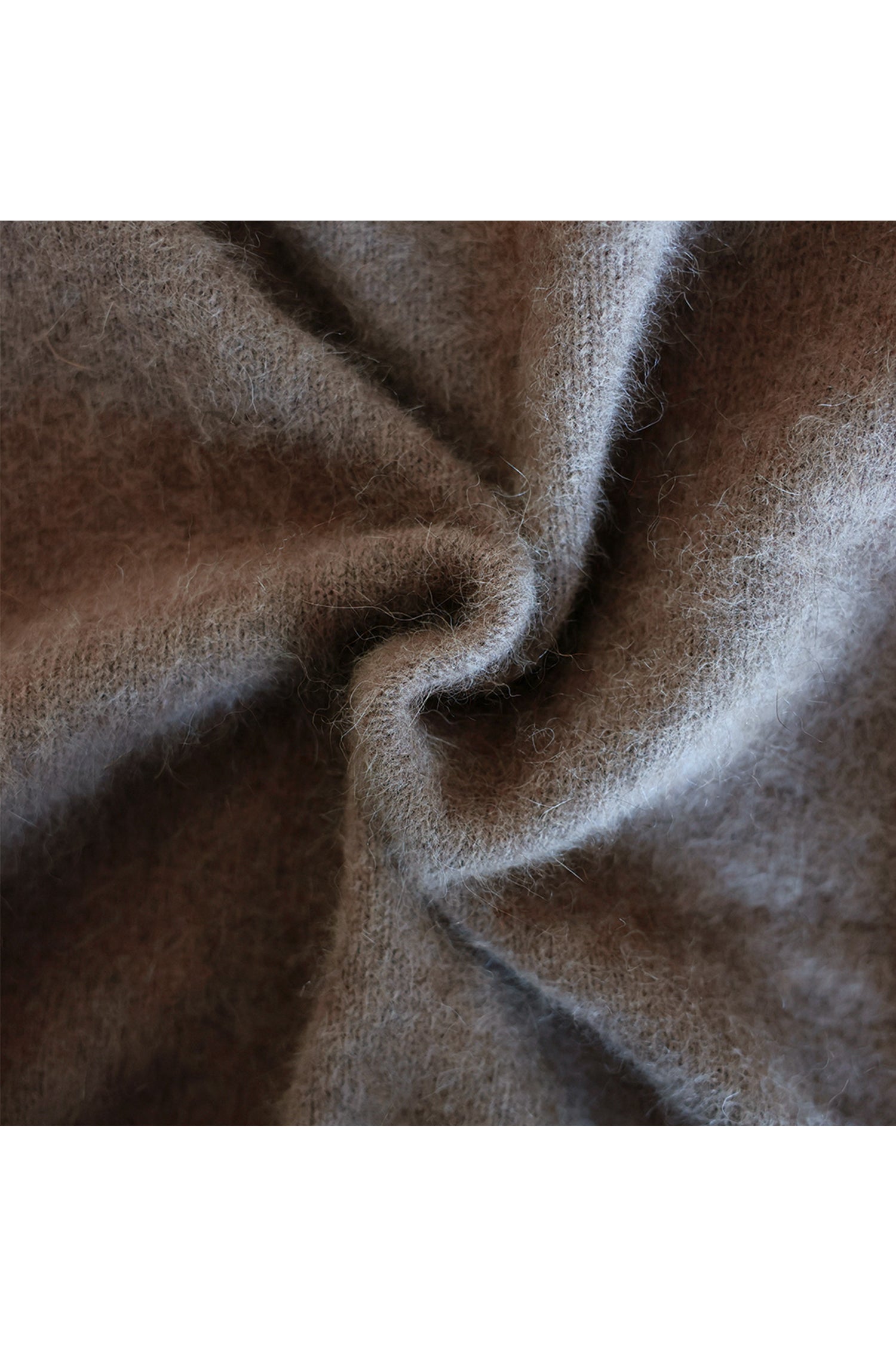 ラクーンとフォックスの毛をそれぞれブラッシングする事でとれた素材をナイロンで撚りをかけて出来たとても暖かい素材です。