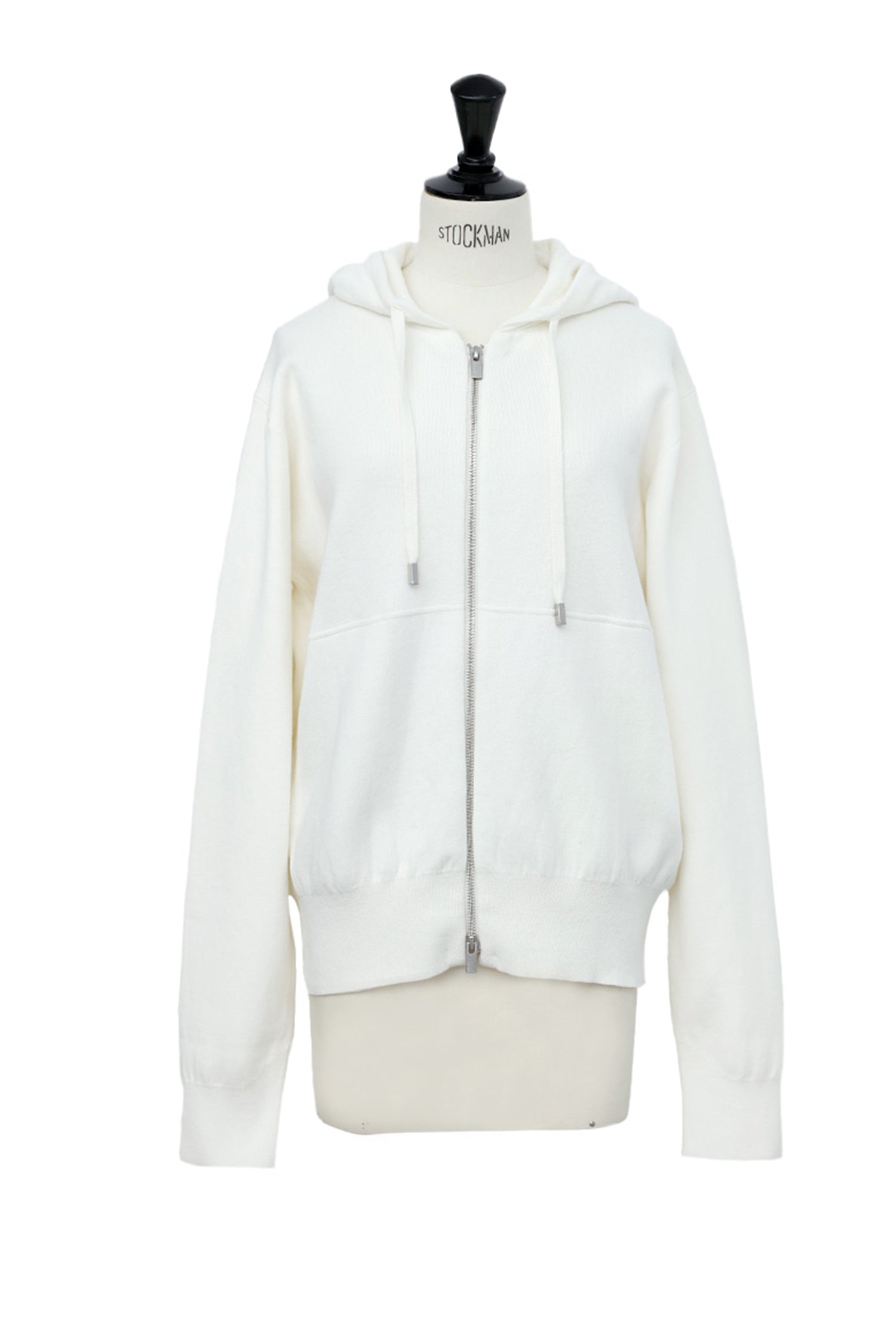 オーバーサイズのフーディーで、しっかりとしたダブルフェイス編みで仕上げているため、幅広いシーズンご着用頂けます。