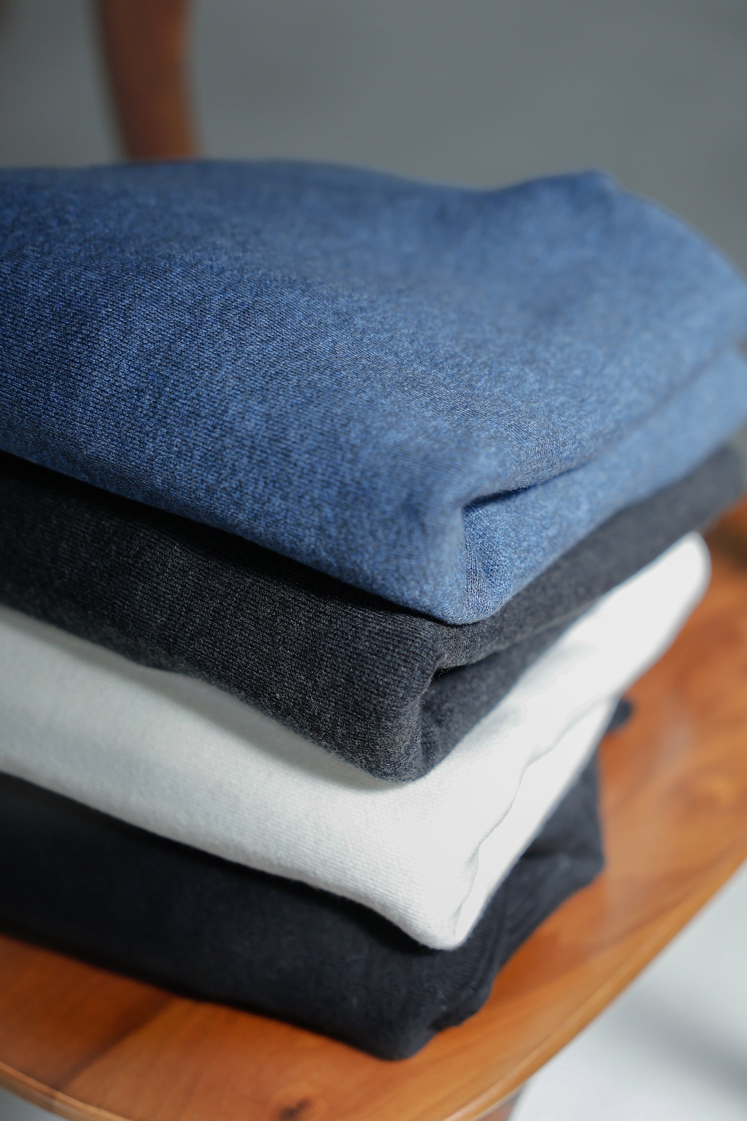 コットンカシミヤならではの柔らかな風合いを活かし、同素材のスウェットパンツと合わせたセットアップスタイルもおすすめですリラックス感がありながらも、品の良い大人のオフスタイルが叶います。