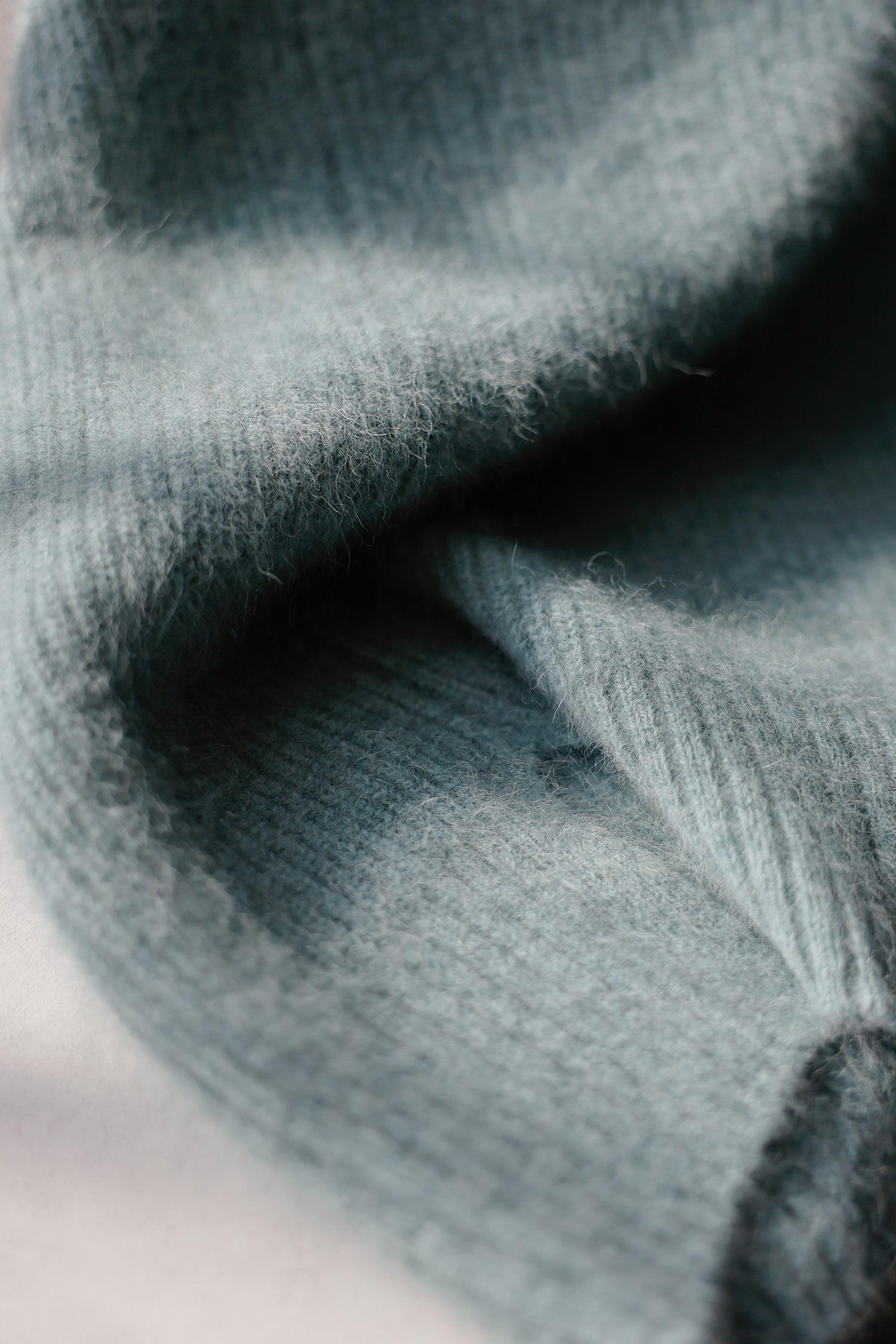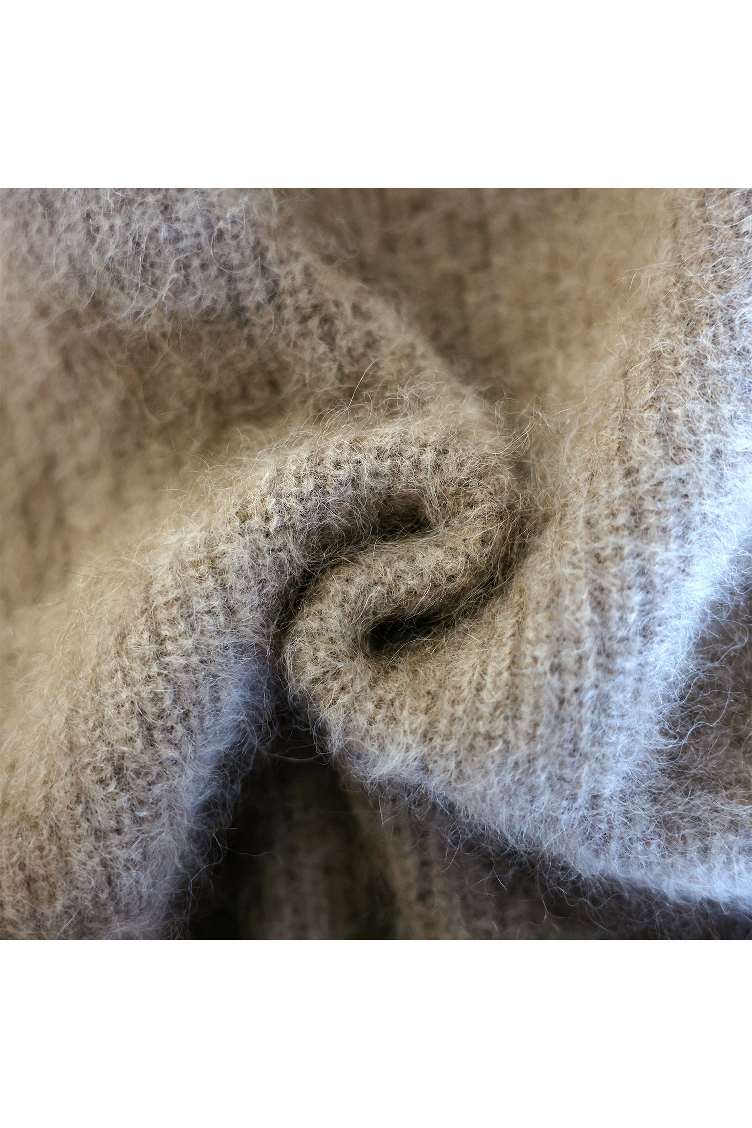 ラクーンとフォックスの毛をそれぞれブラッシングする事でとれた素材をナイロンで撚りをかけて出来た素材です。
