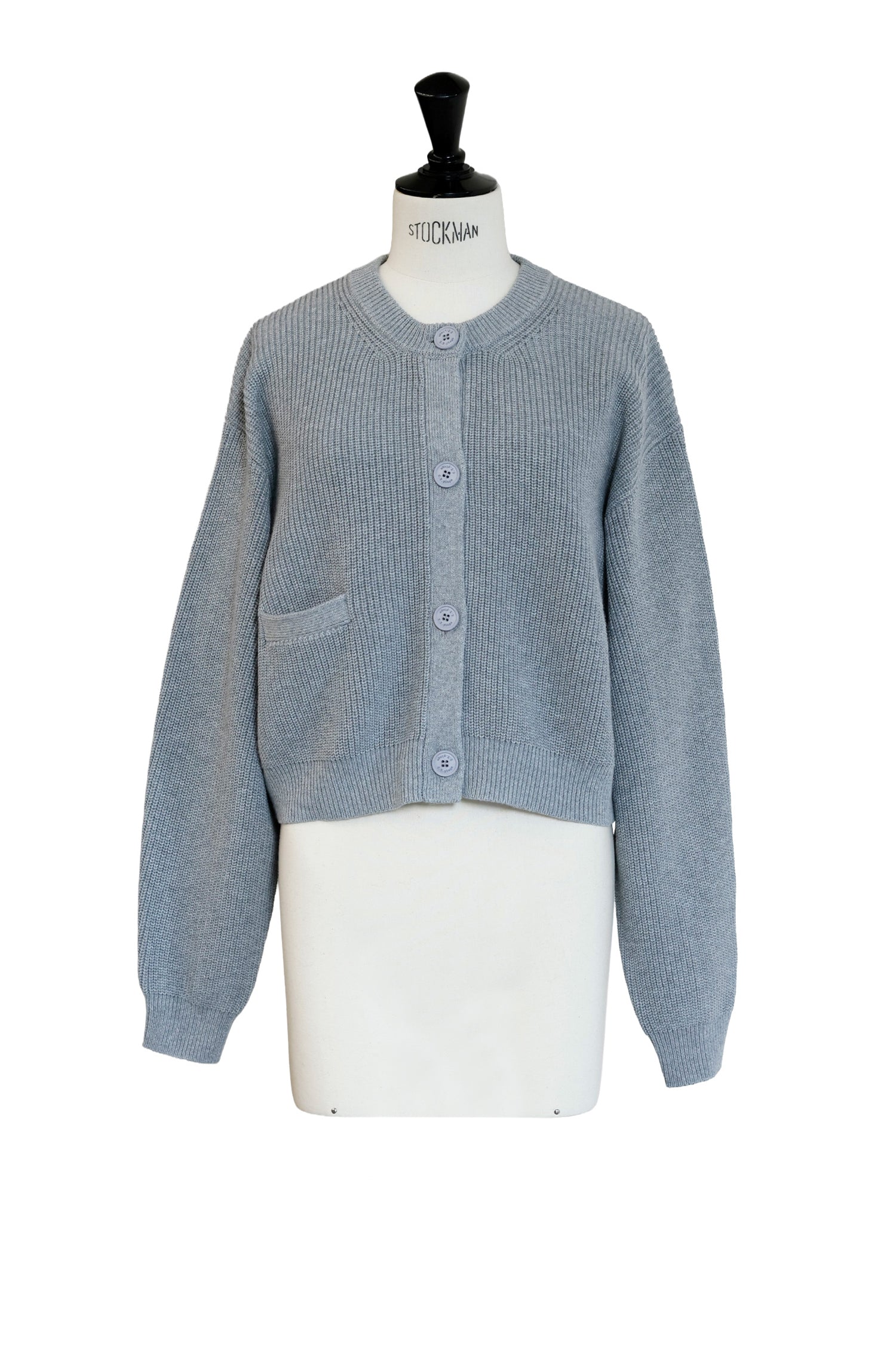 厚みのある編地でショート丈のコンパクトな身頃とボリュームのある袖が特徴です。
