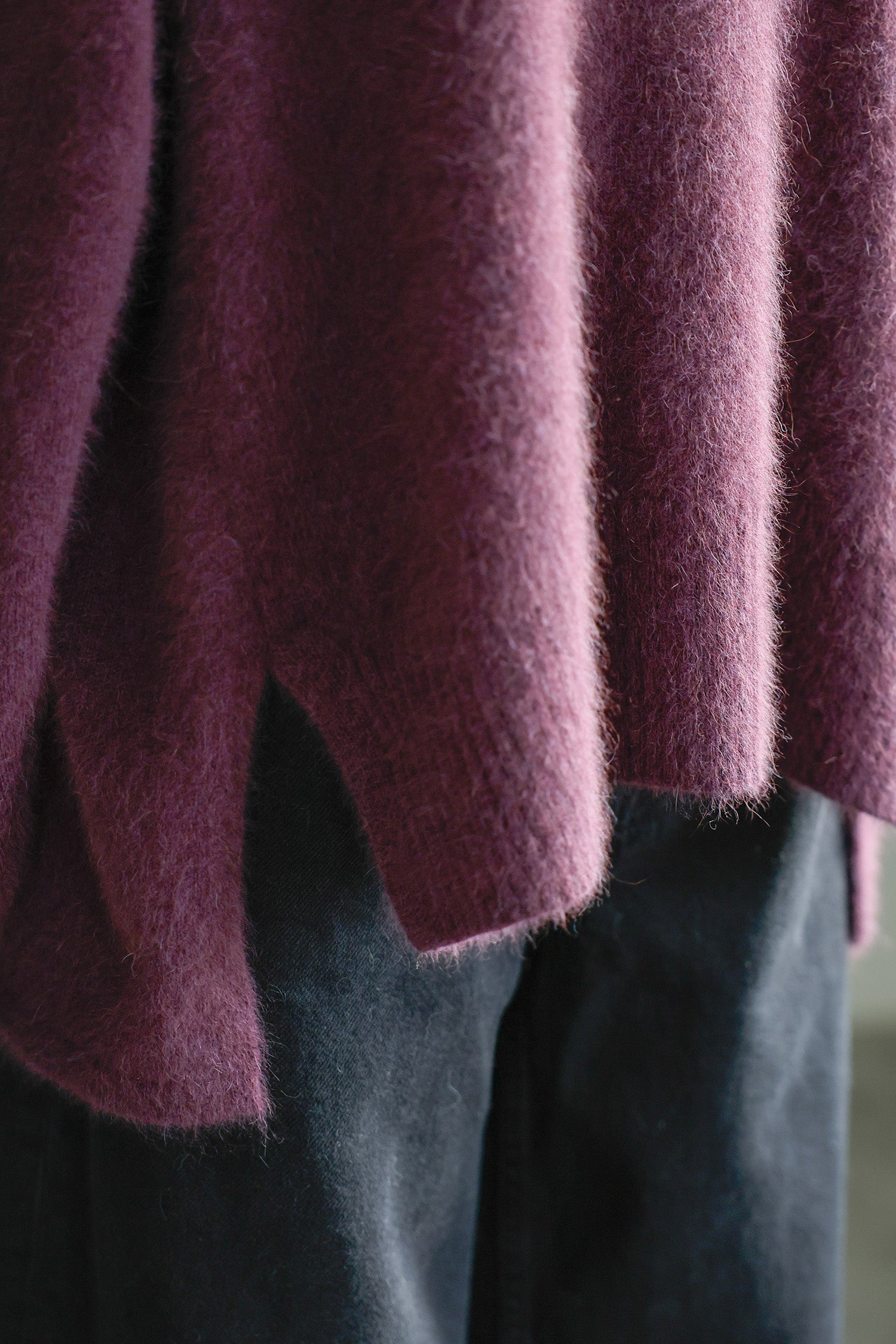 ラクーンとフォックスの毛をそれぞれブラッシングする事でとれた素材をナイロンで撚りをかけて出来たとても暖かい素材です。