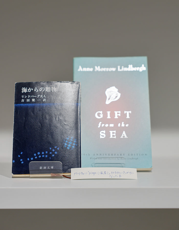 Le nom de la marque s'inspire du livre d'Anne Morrow Lindbergh, Gifts from the Sea (Les cadeaux de la mer). Il s'agit d'un essai qui utilise les coquillages comme motifs pour décrire symboliquement le mode de vie d'une femme, et qui m'a profondément marquée. Depuis lors, collectionner des coquillages lors de mes voyages est devenu mon petit passe-temps. Après être entrée à l'école professionnelle, je me suis passionnée pour l'idée de « m'attacher à chaque détail ». J'ai commencé à aspirer à devenir créatrice de tricots afin de pouvoir être proche des personnes qui, comme Mme Lindbergh, chérissent les petits bonheurs du quotidien.