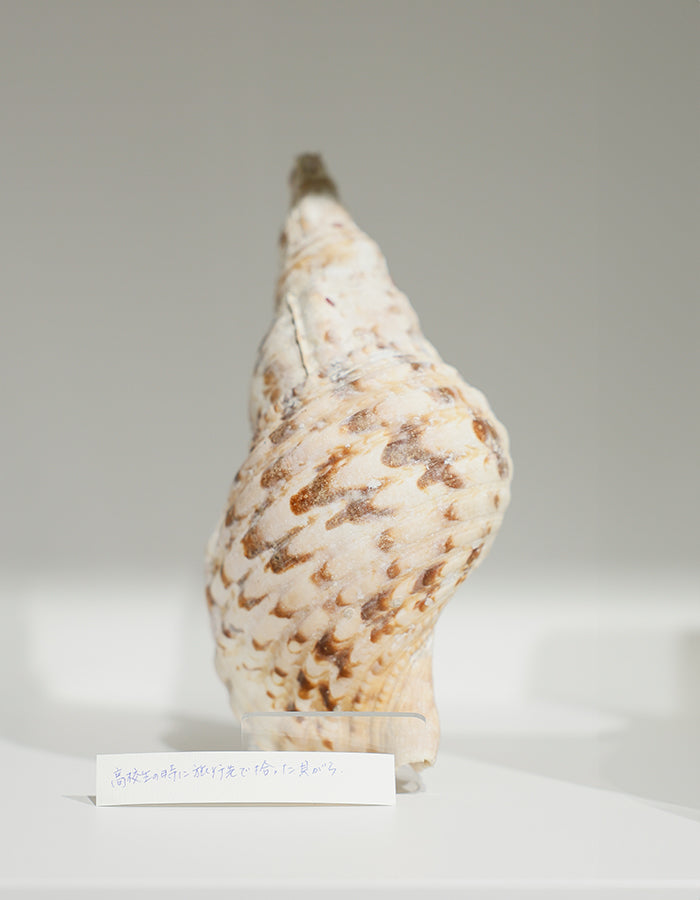 Mon aspiration à devenir créatrice de vêtements en maille a commencé pendant mes années de lycée. J'avais toujours voulu faire carrière dans un domaine lié à l'habillement, à l'alimentation et au logement, ce qui a éveillé mon intérêt pour la mode et l'architecture. Cependant, ma rencontre avec mon professeur d'économie domestique a été un tournant décisif qui m'a amenée à poursuivre une carrière de créatrice. Le « coquillage » que j'ai ramassé lors d'un voyage à l'île de Yoron avec un camarade de classe reste aujourd'hui encore un souvenir précieux.