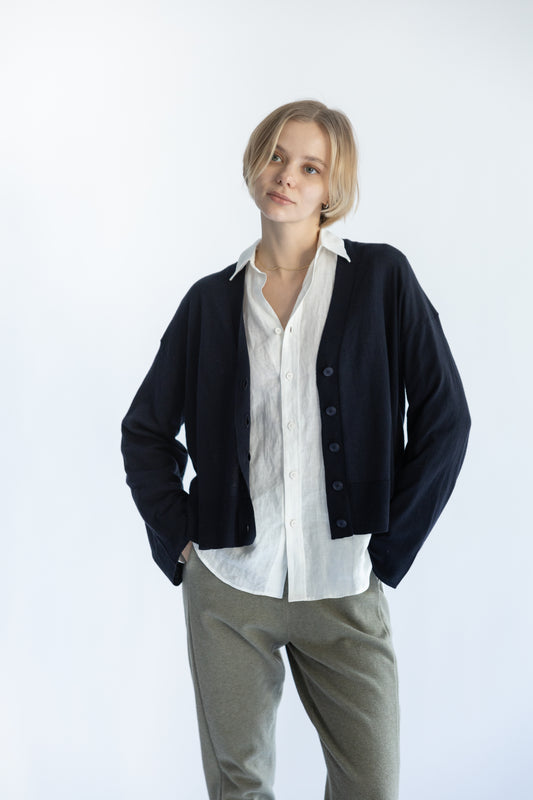 25SS Cardigan surdimensionné original en coton et soie /CT25112