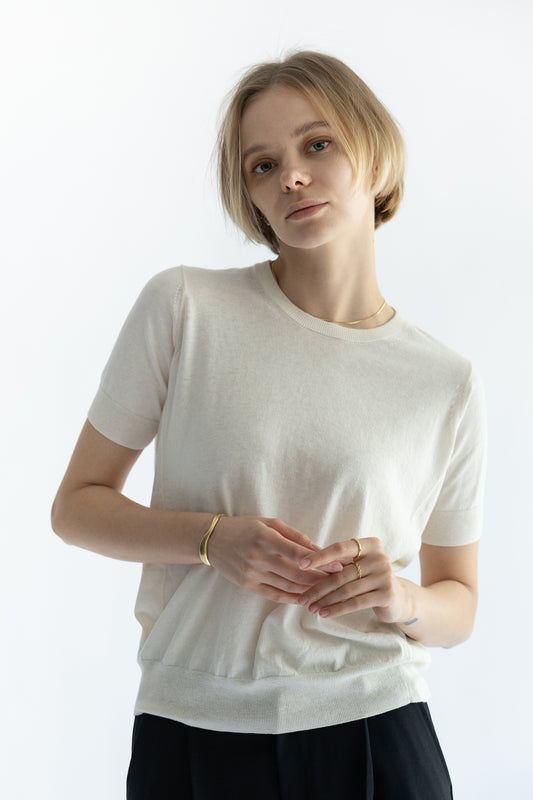 25SS Pull original à demi-manches en coton et soie /CT25110