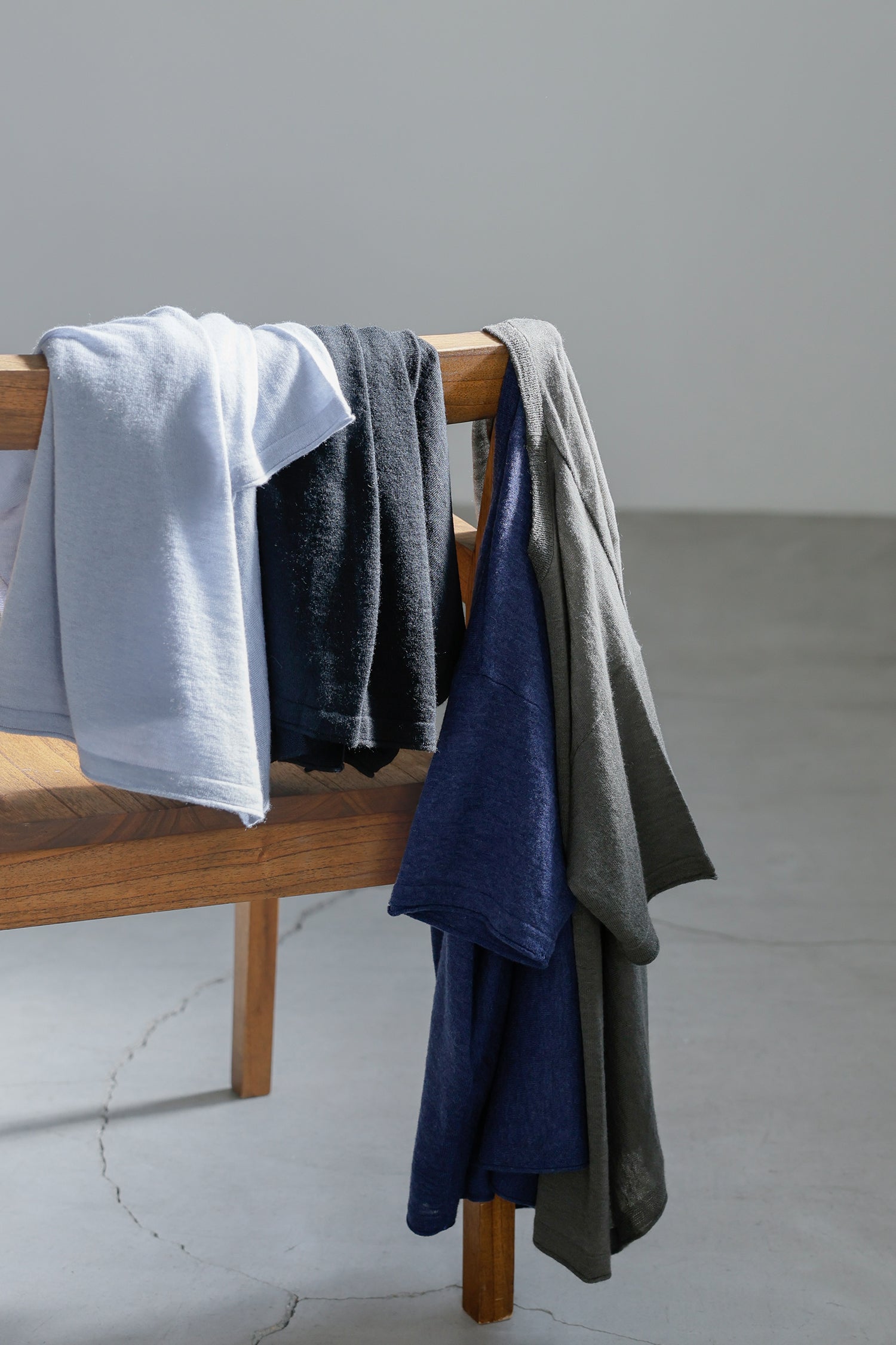 Le fil est composé de cachemire et d'une matière soluble dans l'eau, qui est lavée après le tricotage afin que seul le cachemire subsiste, ce qui le rend très léger, doux, transparent et chaud.